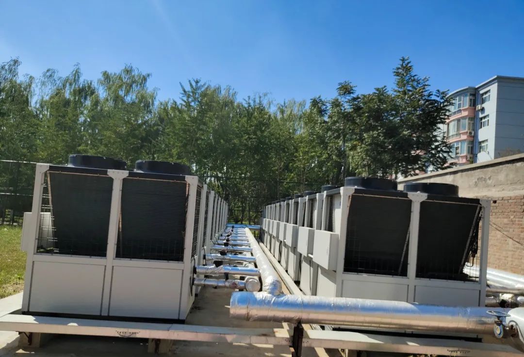 天舒經實地調查后進行方案設計,夏季空調系統冷負荷1162.8KW,冬季空調系統熱負荷930.24KW,選用20臺25匹超低溫空氣源風冷熱泵機組,單臺制冷量65kW,總制冷量1300kW,滿足冬夏冷暖需求,單臺-12℃制熱量53KW ,總制熱量1060KW,滿足冬季采暖要求。
