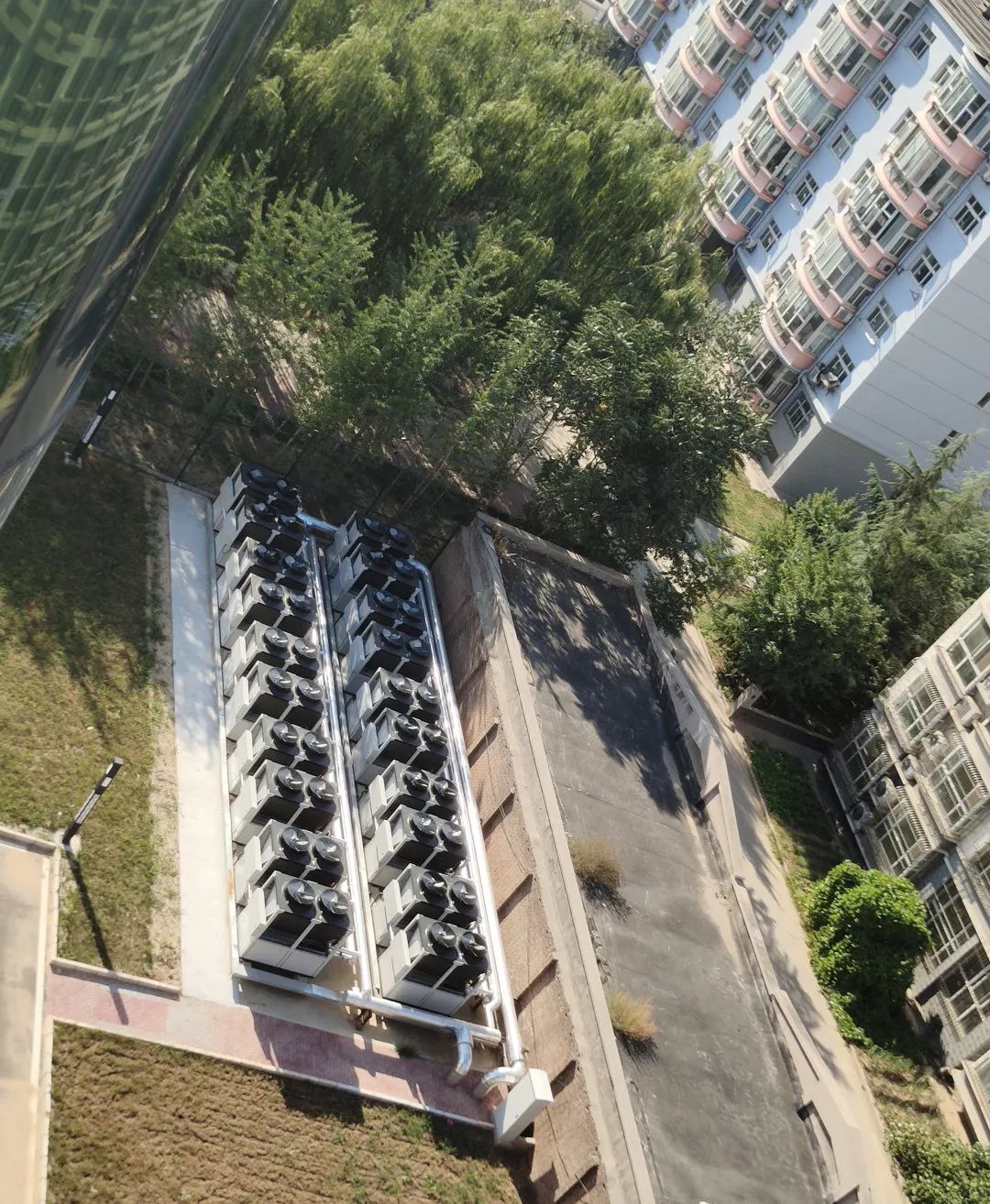 傳統設備需要布置在地下室機房,兩套設備占地面積大。天舒空氣源熱泵可充分利用原有管道和末端換熱設備,安裝在樓頂等空閑處,無需專門機房,安裝方便,改造成本低,后期維護也相當便捷。