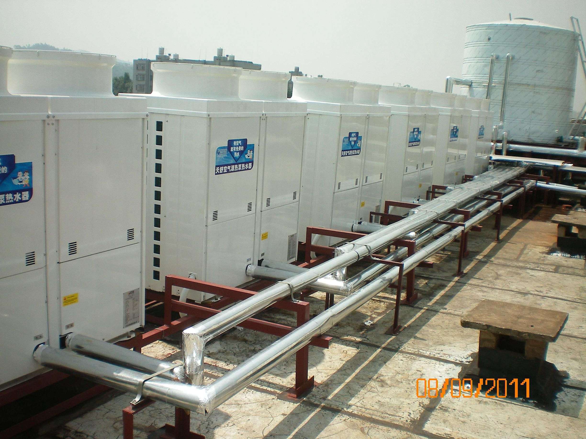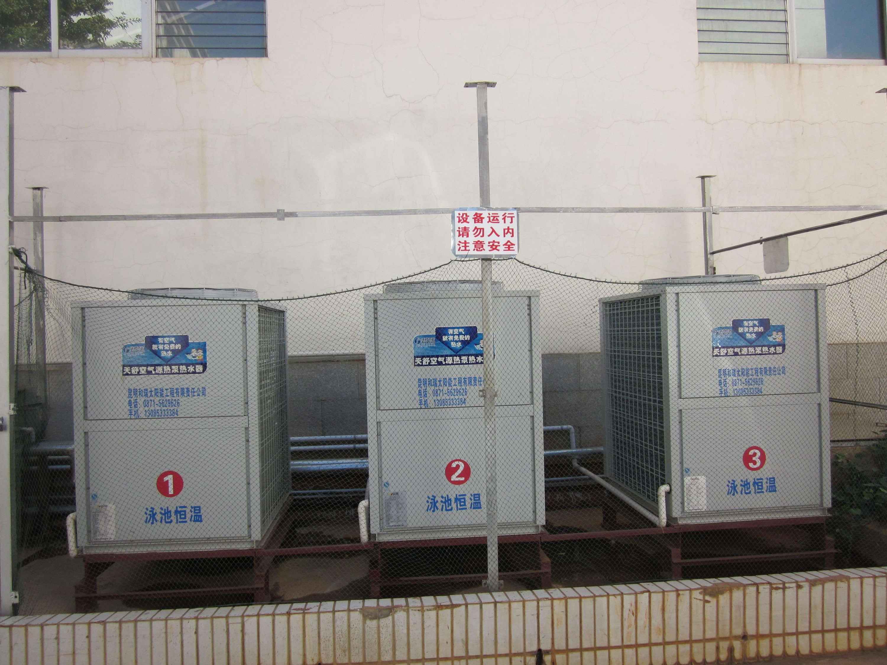昆明世博花園酒店隸屬昆明市商務(wù)局,位于昆明市的世界園藝博覽園附近。本次項(xiàng)目包括186間客房(一號院)包括游泳館淋浴、網(wǎng)球館淋浴、員工洗浴及部分桑拿用熱水,每天需熱水50噸,選用了6臺天舒熱泵機(jī)組。經(jīng)系統(tǒng)運(yùn)行每天的耗電量在500度左右,運(yùn)行費(fèi)用是改造前的1/3。