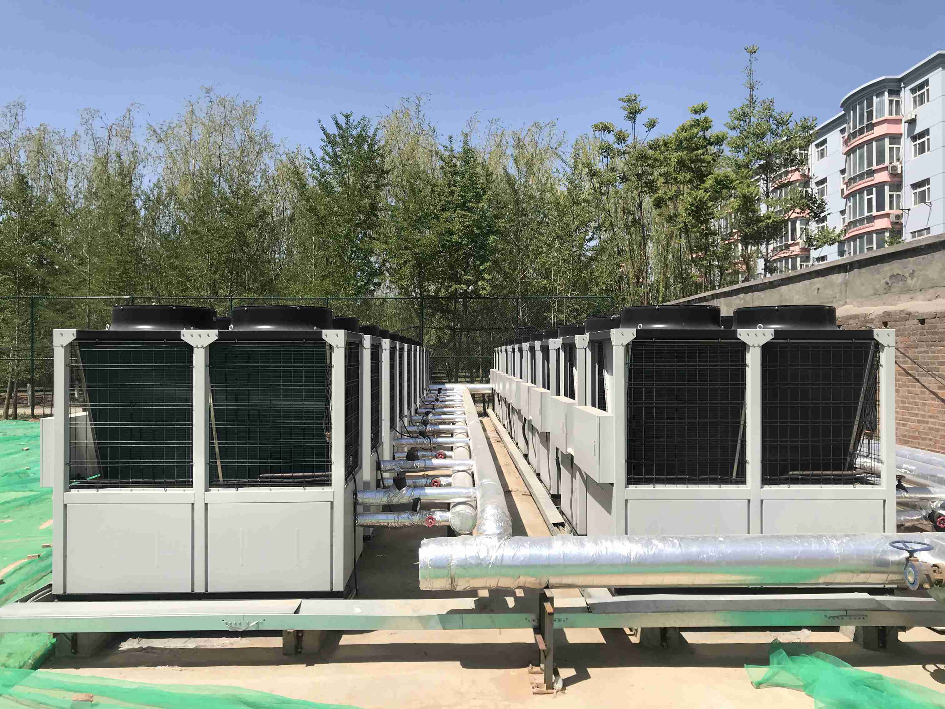 該賓館采暖制冷面積共計13860平米,冬季采暖室內溫度18-22℃、夏季制冷室內溫度24-28℃,末端采用風機盤管。原先采用天然氣鍋爐提供熱源,后來因運行費用過高,賓館決定進行新能源綜合利用的項目改造,選用天舒空氣源熱泵風冷機組50匹共10臺,完美解決冬季采暖、夏季制冷的需求。