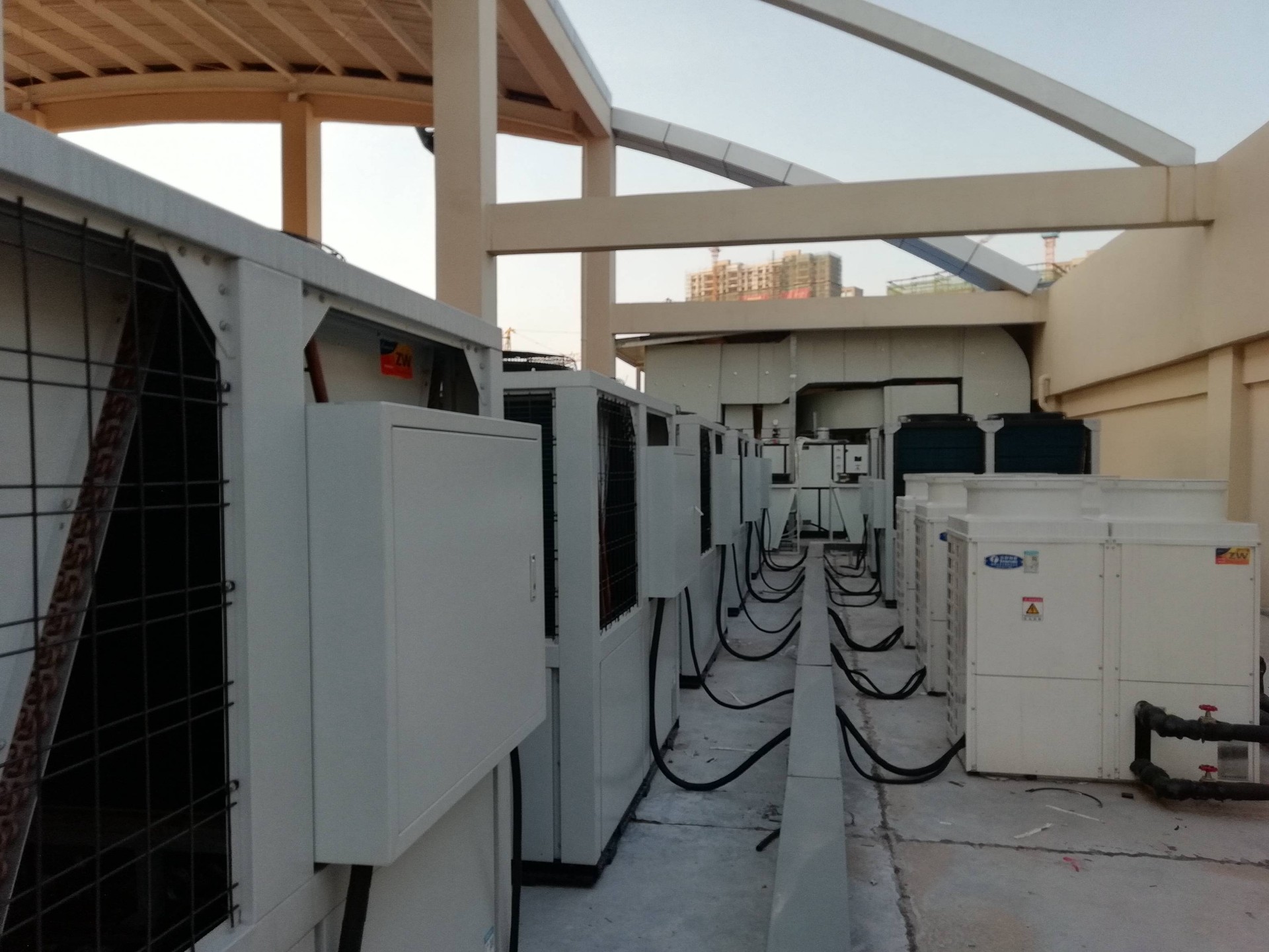 萍鄉公安消防支隊 綜合訓練館泳池項目一共四個水池,分別為:50米游泳池,池容約1400m3、水療池,池容約60 m3、熱水池,池容約5 m3、冰水池 ,池容約3 m3。一共采用7臺天舒熱能空氣源泳池恒溫機組,3臺天舒熱能空氣源熱泵熱水機組,以滿足泳池恒溫和淋浴的需求。