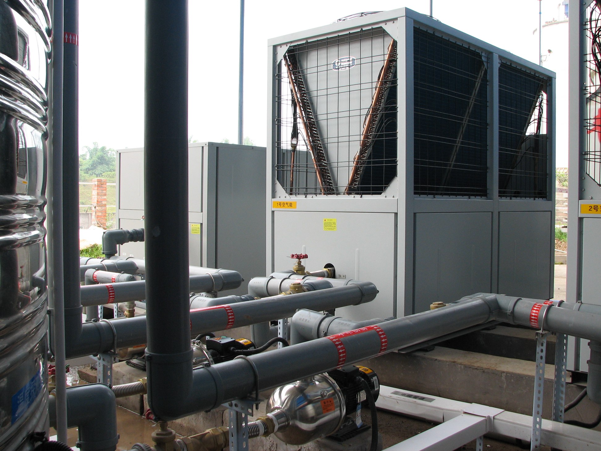 本工程為重慶金茂達特種橡膠有限公司熱水工程,公司共有2條生產線,每條生產線每次排放45℃熱水4噸,間隔2小時,每條生產線每隔2小時需要補充4噸55℃熱水。擬在冬季時利用廢水源熱泵機組提供熱水,夏季時可利用機組內部換熱器直接換熱熱水,廢水熱量不夠部分由空氣源熱泵機組進行補充,降低運行成本。