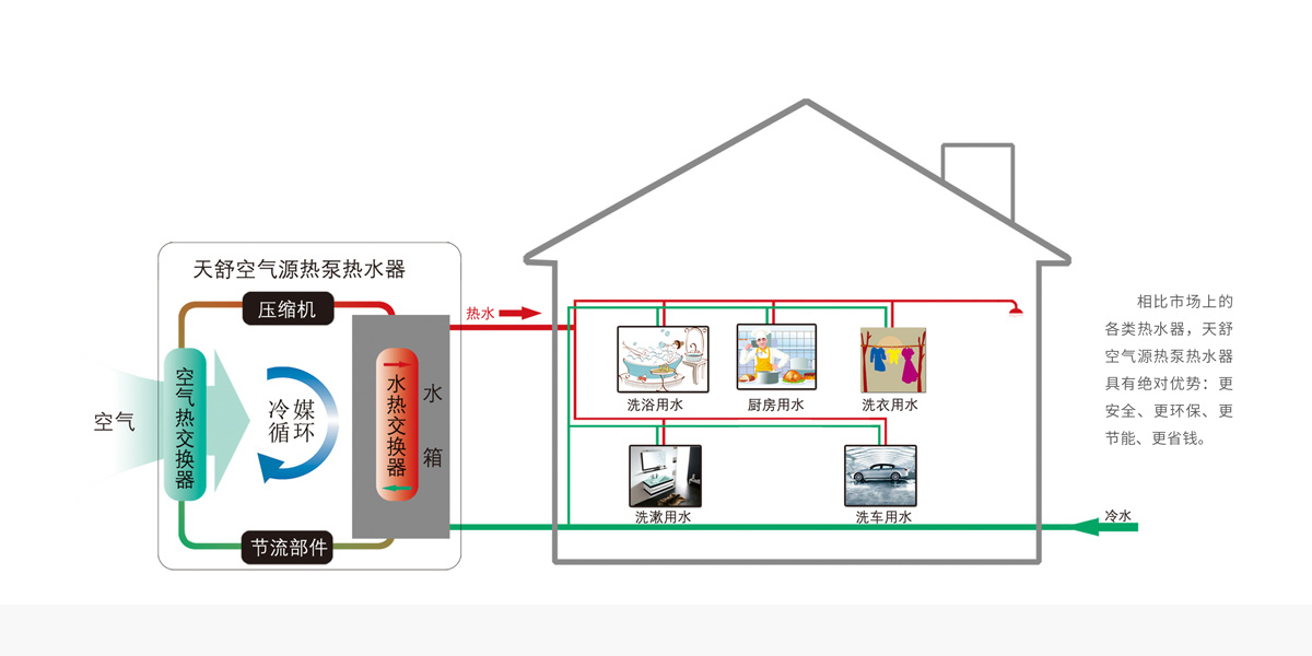 運行過程不產生任何廢棄物,能效比是電加熱的四倍。