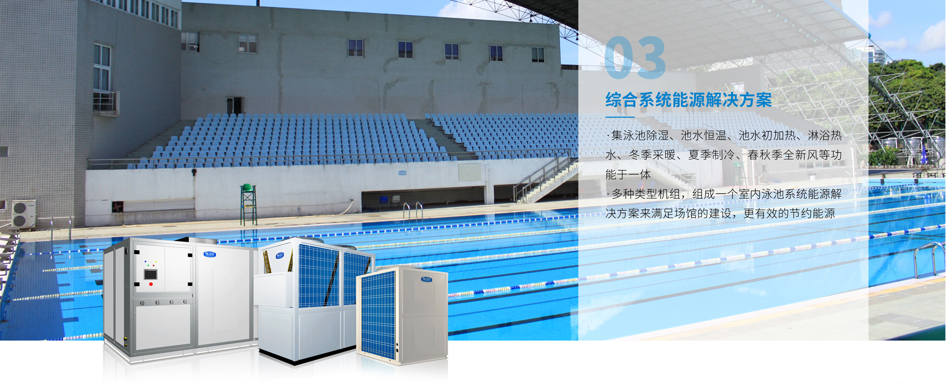 比賽游泳池對水溫要求較高,天舒泳池熱泵系統不僅能精確的控制水溫,而且相比傳統的加熱方式,可節約80%運行費用。