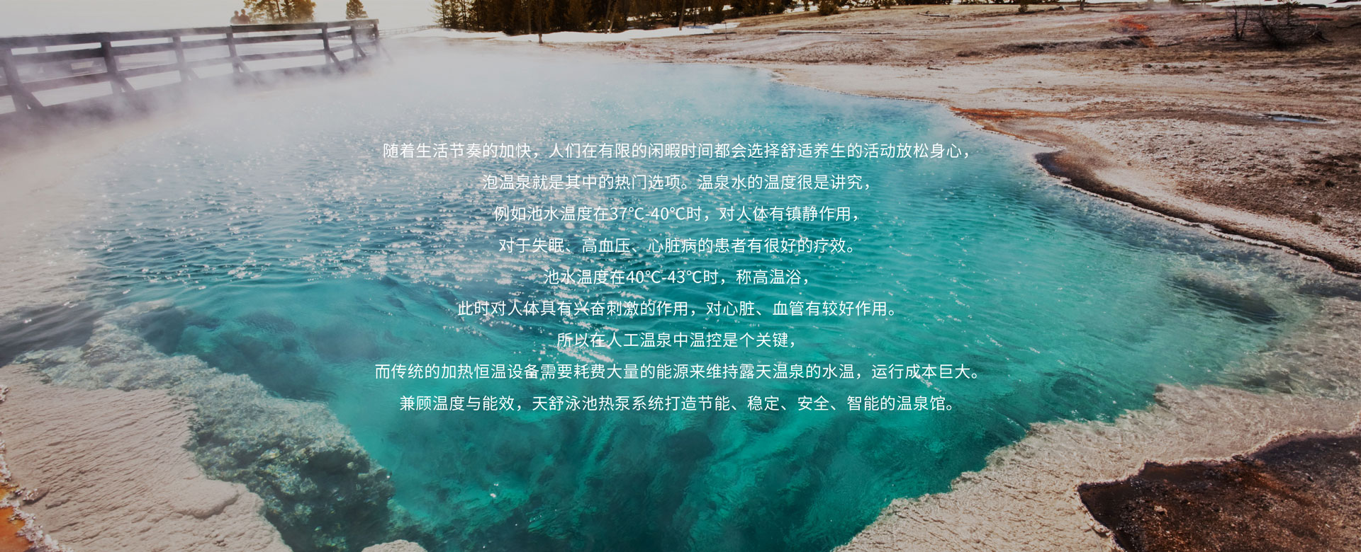 各個(gè)溫泉池的溫度要求不同,天舒泳池?zé)岜孟到y(tǒng)不僅精準(zhǔn)控溫,而且相比傳統(tǒng)加熱方式,節(jié)約大部分運(yùn)行費(fèi)用。