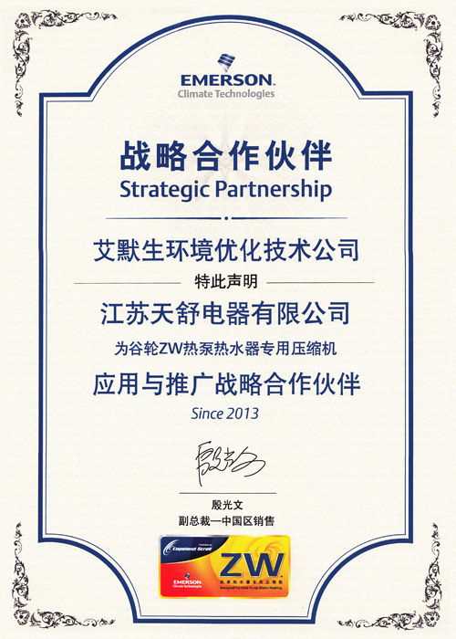 2013 年07 月,成為華東區(qū)域唯一一家谷輪ZW熱泵熱水器專用壓縮機應用與推廣戰(zhàn)略合作公司。