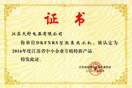 2006年04月,天舒多項空氣源熱泵產(chǎn)品被認定為高新技術產(chǎn)品。