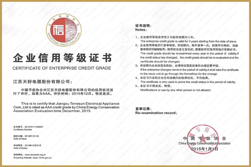 2016年12月,天舒成為節(jié)能協(xié)會行業(yè)內首批3A資信企業(yè)。