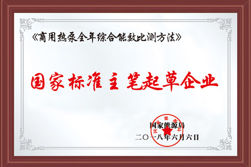 2017年12月,天舒主筆制定國家商用熱泵全年綜合能效比測試方法。