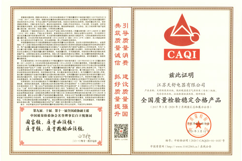 2012年06月,天舒多款產(chǎn)品入圍首批國家節(jié)能補貼惠民工程。
